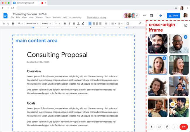 Google给出的例子主要是用于视频会议,用户现在可以选择想分享的屏幕区域。这对于在屏幕共享时隐藏视频会议控件特别有用。