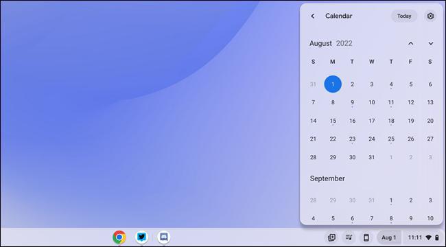 Google也在对Chromebooks的系统托盘进行改造。这是一个显示时钟、电池和Wi-Fi的区域。Chrome OS 104将日期添加到系统托盘中,并带来了一个新的日历部件。