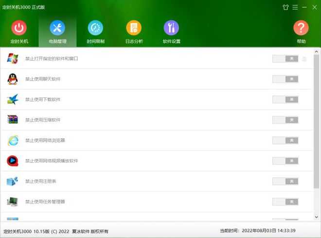 该软件还具有“计算机管理”功能,防止计算机打开指定的程序或窗口。