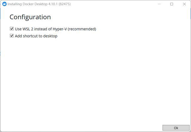 接下来安装从 Docker 官网下载的「Docker Desktop」,选项上注意勾选「Use WSL 2 instead of Hyper-V(recommended」,这样 Docker Desktop 就会运行在 WSL 2上。