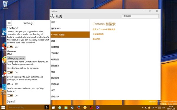 另外Win 10的最大变化就在于任务栏多出了硕大的“搜索栏”,直接点击,会启动Cortana,如果在里面输入文本,则会直接开始搜索,搜寻硬盘以及保存在OneDrive的资料,前提是拥有微软账户,而且登录了。