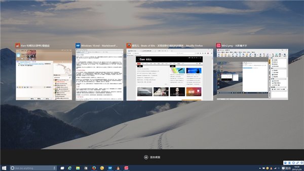 按下Win + Tab键之后,就会出现任务预览窗口,可以方便人切换不同的app