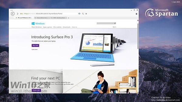 根据之前的消息,这款新浏览器将适用于各种Win10设备,而且还有可能登录Android和iOS平台,所以其界面设计应该沿用Modern扁平风格。设计师seniaku也正是采用了这种构想,并且在部分保留IE11风格的基础上,结合其他流行浏览器的设计理念,创造出了他心目中的“斯巴达”。