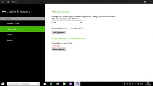 微软预计会通过“Windows更新”来为windows7与8.x用户推送全新的Windows 10消费者版本系统更新,外媒Neowin今天在Windows 10 Build 9901中发现了一次更新即将到来的证据,Build 9901的《设置》应用中一出现了新的“slow ring”Build预览版本。