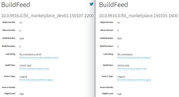 类似的情况还出现在Win10预览版9916上面,它同样拥有“awesome”版,并且也有两版“marketplace”。和Win10预览版9918一样,后一版“marketplace”也是开发者版,并且最后完成编译的时间在Win10预览版9918“awesome”之后。但从最近编译版本的时间排序来看,这一版本目前已不再更新,很显然Win10预览版9918已经取代了它的位置。