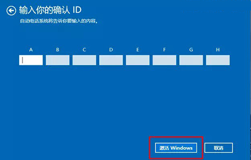 4、按照电话系统语音提示进行操作,语音提示会提供给你确认ID, 按照提示输入第一组、第二组…最后一组数字到下图中,点击【激活 Windows】即可。