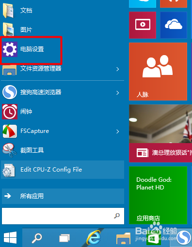 1、我们点击win10的“开始”菜单
