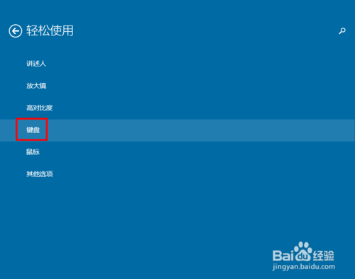 4、在“轻松使用”中我们选择“键盘”