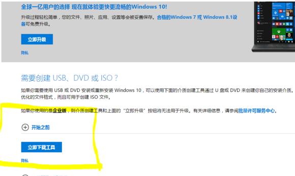 1、点击进入微软官网下载系统升级工具,打开网页后,可以看到如下界面,点击绿框位置(win10系统的电脑才能如下页面,其他系统看到不如下页面)