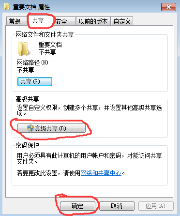 3、出现了重要文档 属性,在单击“高级共享”。