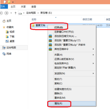 2、然后右击重要文档,选择“属性”。