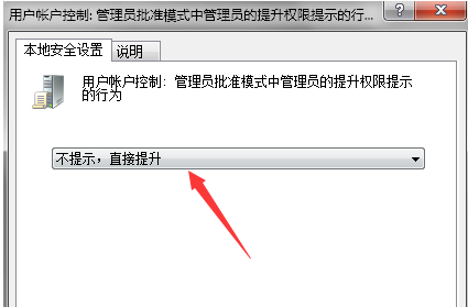 2、双击右边的“用户账户控制:管理员批准模式中管理员的提升权限提示”,此时会弹出一个设置的选项,这时你需要选择“不提示,直接提升”,如图所示。