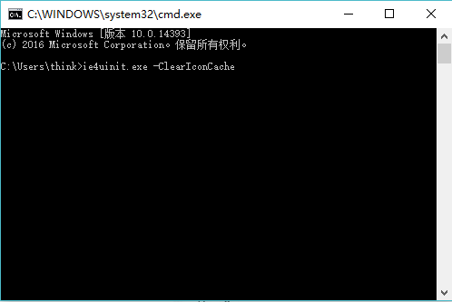 2、在命令提示符中输入指令ie4uinit.exe -ClearIconCache回车,如图所示。