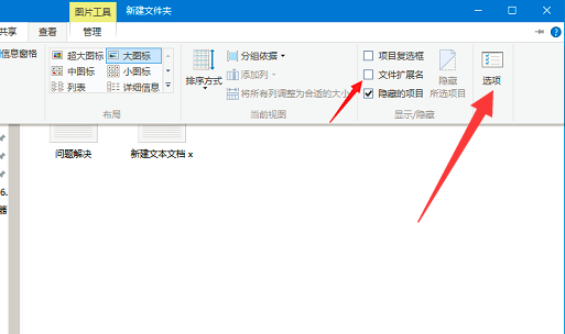 2.在弹出的各种选项中勾选“文件扩展名”;