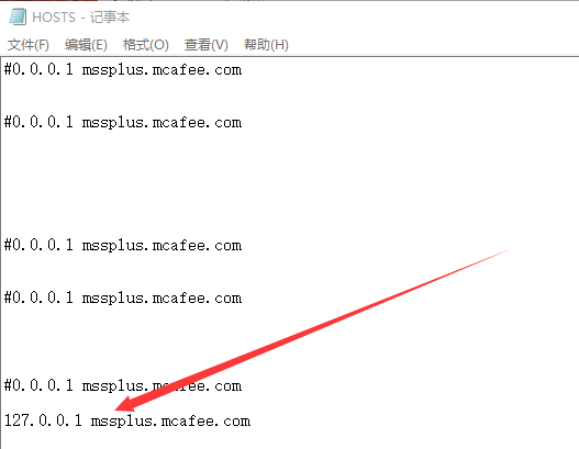 4.打开后在hosts文件最底下输入127.0.0.1+要屏蔽的网址或0.0.0.0+要屏蔽的网址,如图所示,IP地址和网址中间用空格隔开;