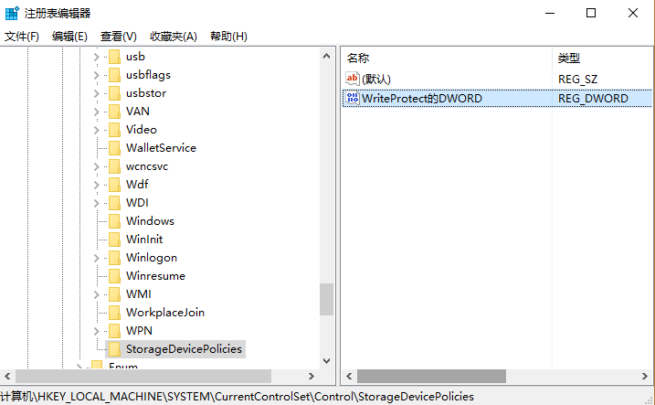 3.点击该项,在右侧新建一个名为WriteProtect的DWORD(32位)值;