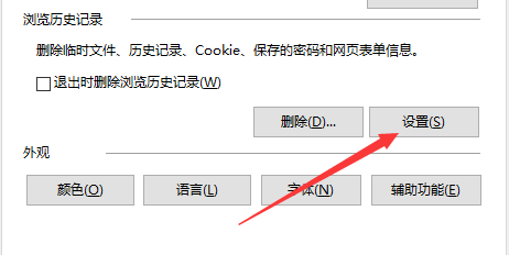 3、重新刷新需要保存图片的页面,然后切换到internet 选项界面,在浏览历史记录下面点击【设置】;