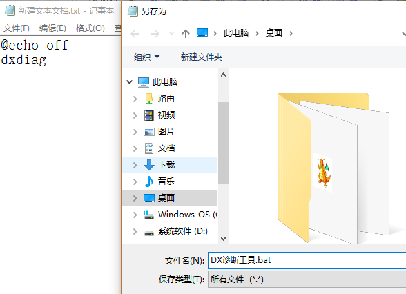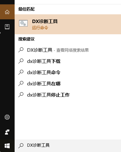 然后你再在Cortana搜索框中输入“DX”或“DX诊断工具.bat”,小娜就能找到“DX诊断工具.bat”,点击即可。