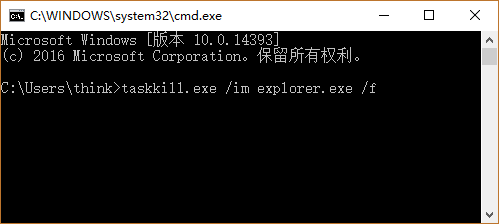 备注:其中taskkill.exe是结束进程的程序,参数/im可以让你输入具体进程名称,explorer.exe是文件资源管理器的程序名(此处为举例),参数/f是强制执行。