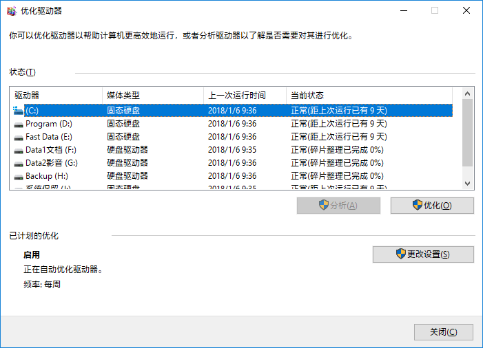 Win10系统内置有“碎片整理和优化驱动器”工具,在打开“优化驱动器”窗口以后,你在“媒体类型”列表中即可看到有无“固态硬盘”类型。如图: