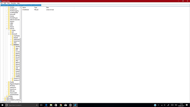 2、注册表编辑器打开后,输入此地址Computer\HKEY_LOCAL_MACHINE\SOFTWARE\Policies\Microsoft\Windows(或复制并粘贴到地址栏)。