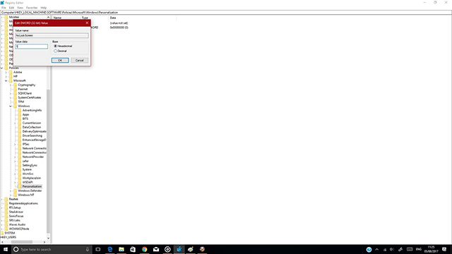 5、将此DWORD的值设置为1现在将禁用Windows Install的锁定屏幕。