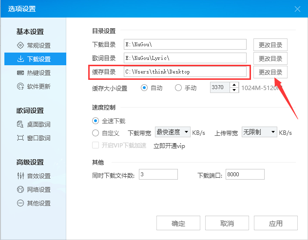 2、这里我们可以看到有个缓存目录,将其更改到其它路径艰即可。
