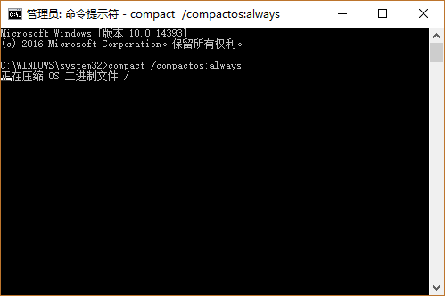 2、在管理员:命令提示符窗口输入:compact /compactos:always 回车即可,我们就可以看到进程正在进行,如图所示: