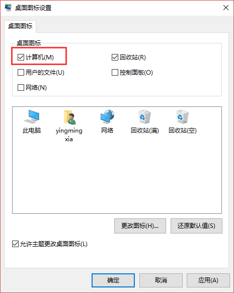 3、如图,勾选“计算机”,即可在桌面显示此电脑了;