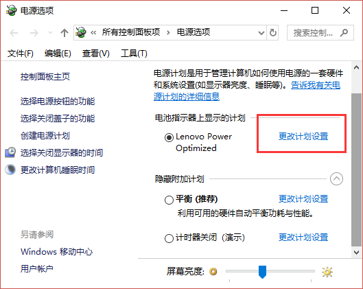 3、然后,在右边选择”更改计划设置“,如图所示,要记得更改正在使用的计划;