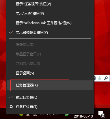 1、在任务栏空白处,鼠标右键菜单中选择“任务管理器”选项(如下图所示);