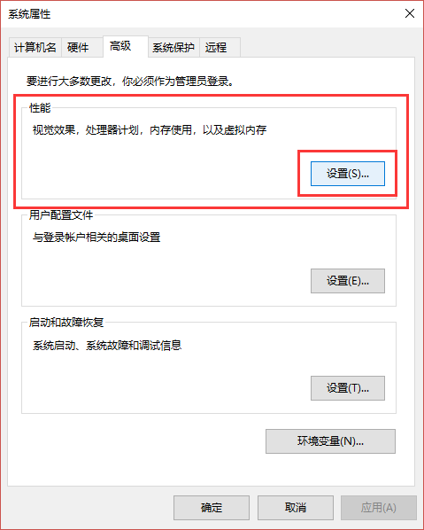 2、点开“高级”-“性能”并点开设置。