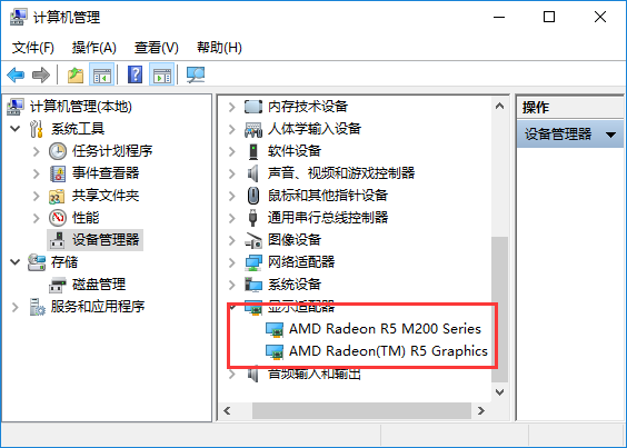 4、展开“显示适配器”,里面有两个设备,分别是集成显卡和独立显卡