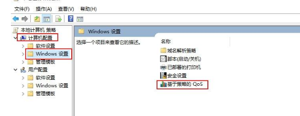 2、在打开的组策略窗口中,在左侧窗口点击“Windows设置”,然后在右侧窗口找到“基于策略的Qos”;