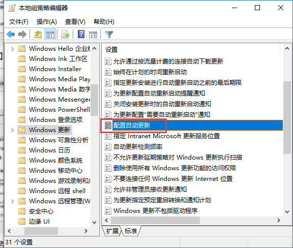 4、然后点击进入Windows更新,找到右边的【配置自动更新】;