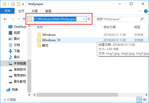6、最近,大家可以直接在地址栏里粘贴C:\Windows\Web\Wallpaper,回车就可以直接到达。