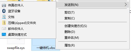 5、找到 之前保存的 一键待机.vbs 单击右键,选择 发送到 -- 桌面快捷方式;
