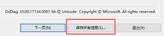 2、在打开dxdiag诊断工具后,点击右下角的保存所有信息;