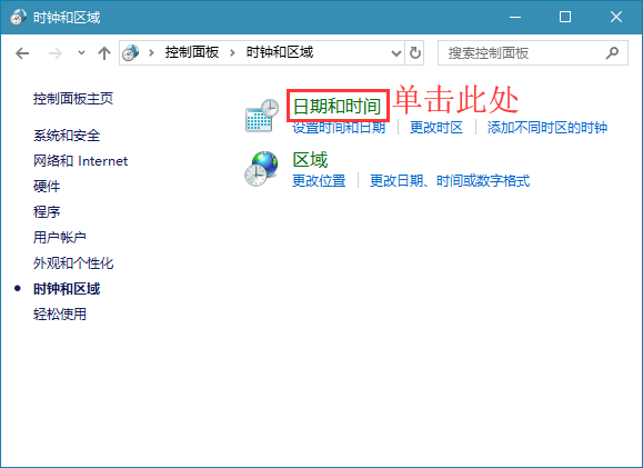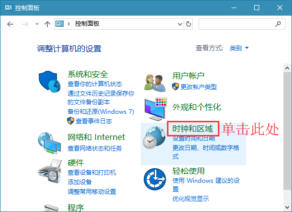 3、在控制面板界面点击时间语言与区域进入,如下图所示