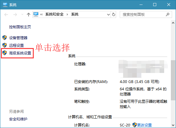 2、在“系统”界面选择“高级系统设置”,可以打开“系统属性”,从而进行系统属性配置。