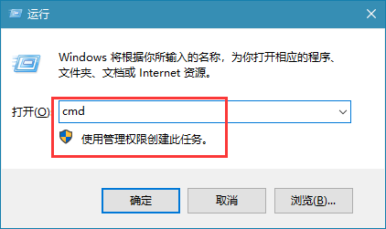 1、按下“Win+r”组合键,调出运行窗口,并输入CMD命令;