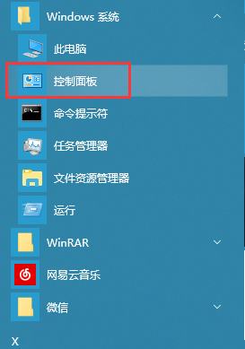 1、在Win10系统中点击开始菜单,在windows系统文件夹中选择进入控制面板。