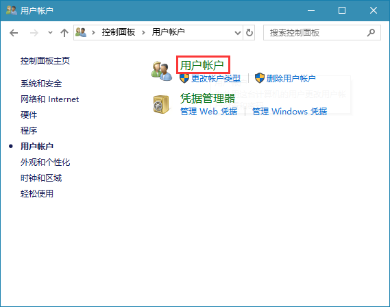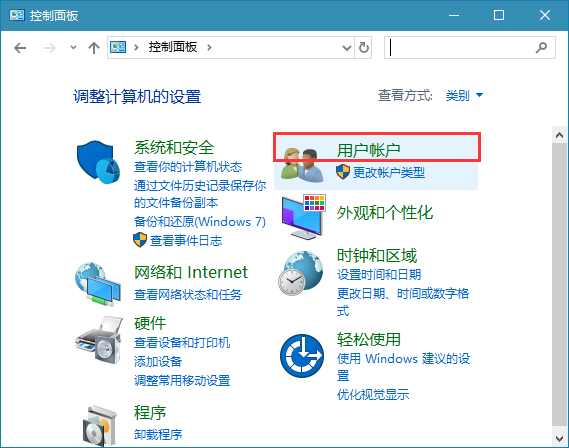 3、接着点击“用户帐户”选项。