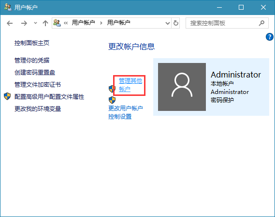 4、这里我们点击“管理其他账户”,来选择要更改的账户;
