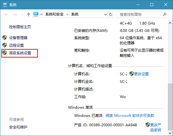 2、在弹出的系统属性页面,我们如图所示选择“高级系统设置”;