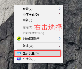 1、在桌面环境下,右击桌面空白处,选择“显示设置”;