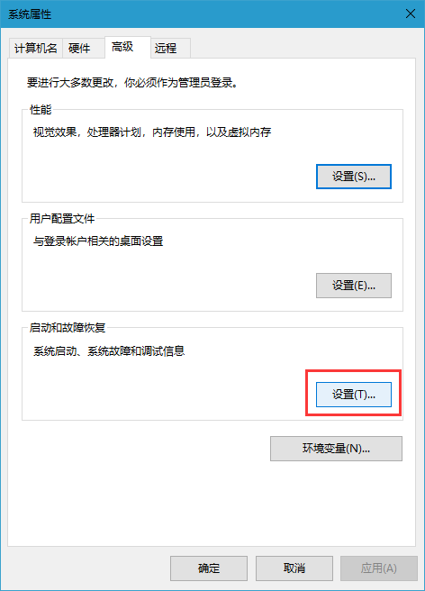 3、打开系统属性“高级”菜单下的“启动和故障恢复”的“设置”;