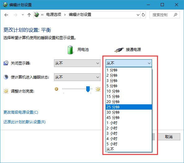 3、若不想电脑进入休眠状态,我们将其设置为“从不”即可