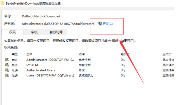 2、点击所有者后面的更改键