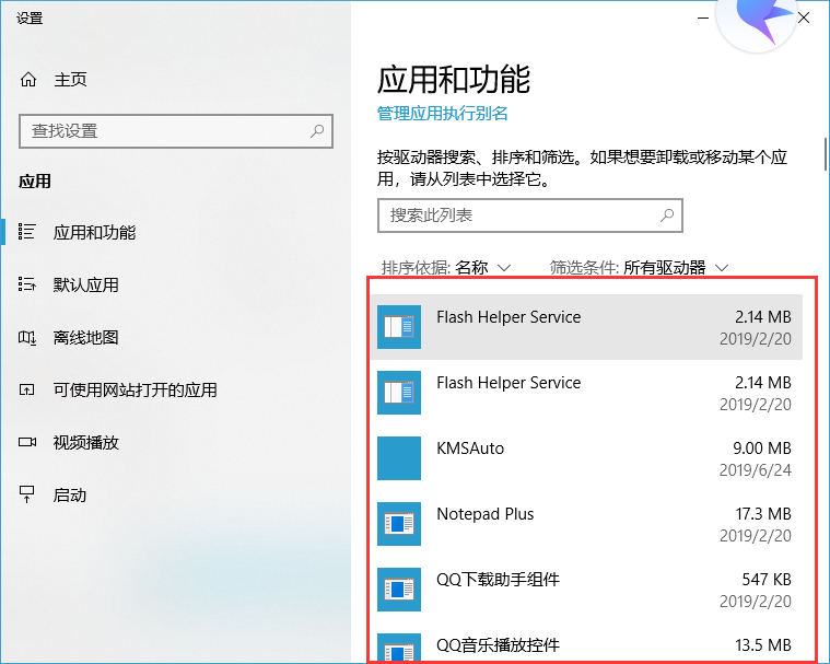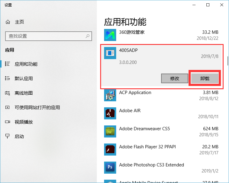 2、打开应用和功能后,我们会看到右侧相关的应用程序了;